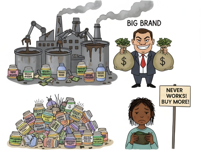Ever wonder why big retailers don't sell real Batana? Because fake Batana makes them more money. Real Batana is expensive to source and works so well you'd only need one jar to start seeing the results. Fake Batana is cheap to produce and doesn't work. They don't want you to find something that actually solves your problem so you keep buying products that will never work.